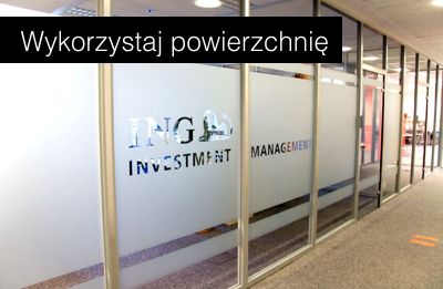 - grafika na powierzchnie szklane (np. okna lub szklane ściany i drzwi w biurowcach)